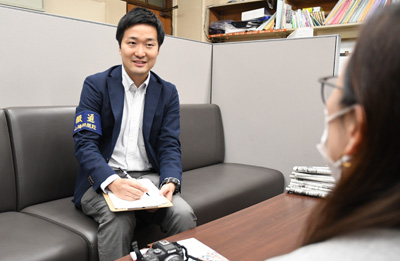 報道部には、事件・事故や災害を取材する社会班、行政や選挙を追う政治班、地域イベントや若者を取り上げるタウン班があります。私は社会班に所属し、担当の一つは「公共交通」。人口減少やマイカーの普及を背景に利用低迷に苦しむバスやタクシー業界の実情を追いつつ、打開策を有識者に聞いて記事にしています。まちづくりの〝根幹〟に関わる公共交通は、身近で奥深いテーマなだけに、取材は刺激にあふれています。
