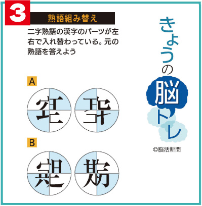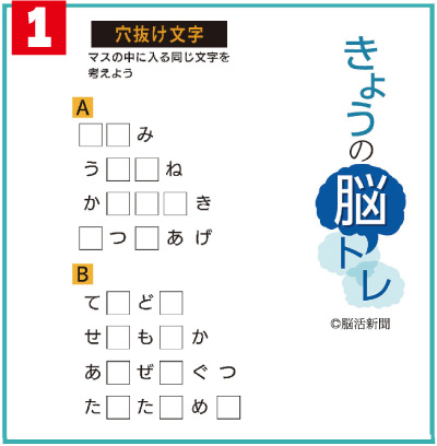 「きょうの脳トレ」は火~土曜日の山陽新聞「読者のページ」(ちまた面)に掲載しています。楽しみながら脳を活性化させ、継続して解くことで認知症予防や生きがいづくり、脳育にもつながる魅力的なコンテンツです。