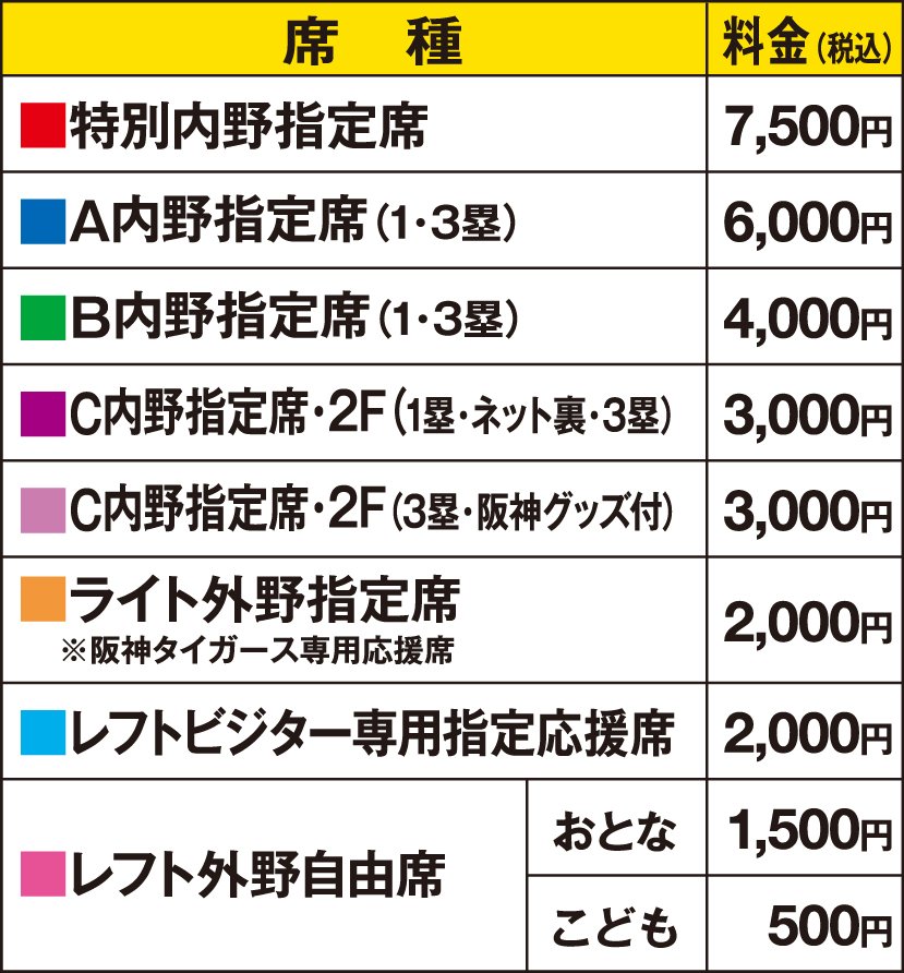 ※C内野指定席(3塁・阪神グッズ付)はコンビニ限定販売(チケットぴあ・ローチケ・イープラス)。