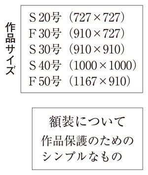 - S20号以上F50号以内。版画については30号以下でも可。
