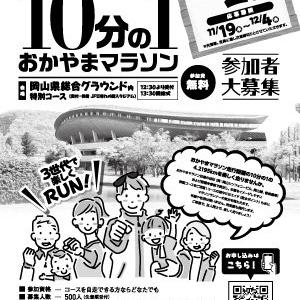 12月21日に行われる第44回山陽女子ロードレース大会(岡山県、岡山市、山陽新聞社など主催)の関連イベント「10分の1おかやまマラソン」が同日午後1時半から岡山市北区いずみ町の県総合グラウンド内特設コースで開かれます。参加は無料です。