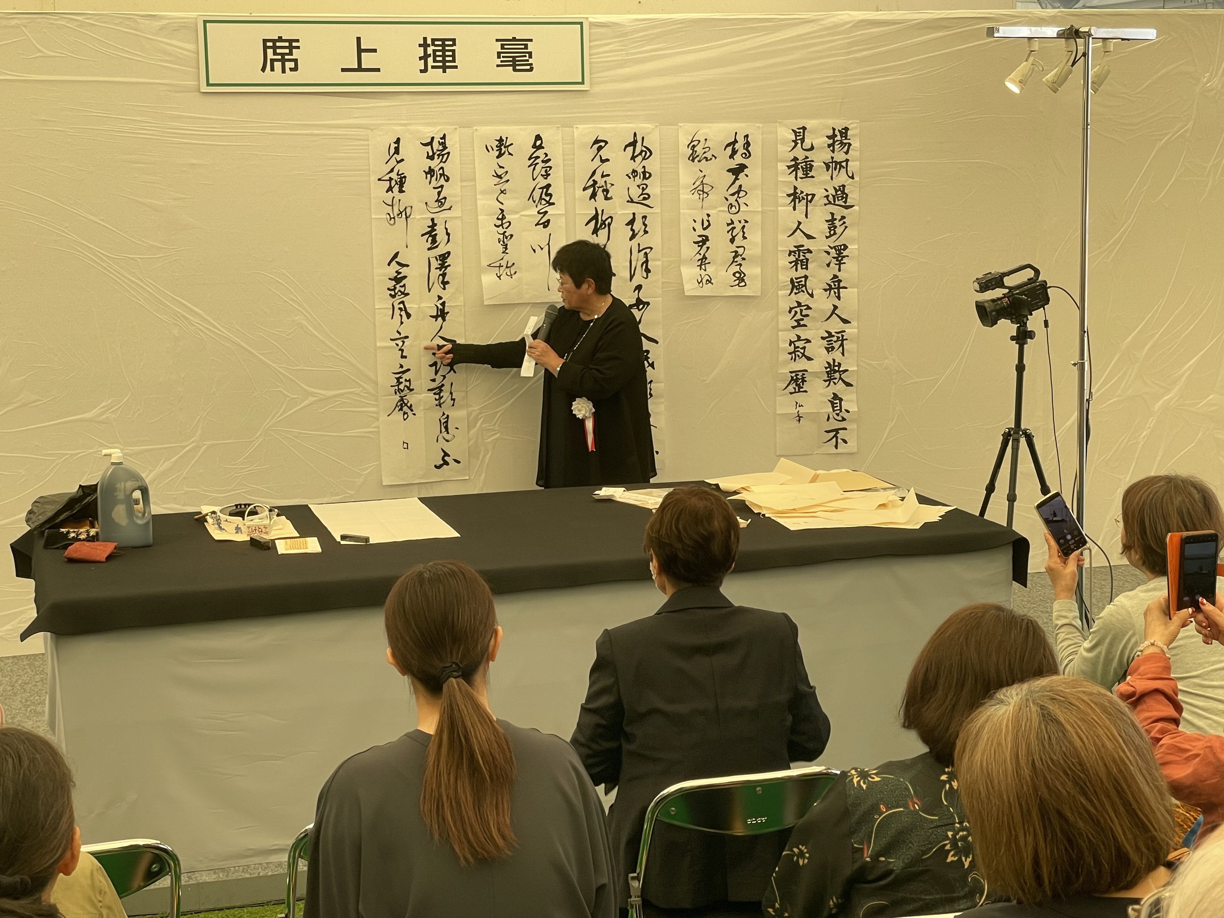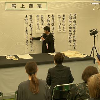 第53回日本書展・第46回岡山県の書展最終日は10月20日、岡山県書道連盟の齋藤弘香理事が席上揮毫とギャラリートークを行いました。月曜日の午前中ではありましたが、会場には開店から大勢の書道ファンが訪れました。